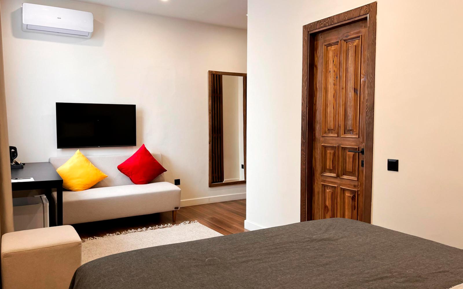 Элегантный номер премиум-класса для ценителей безупречного комфорта и высокого уровня сервиса. Просторная планировка с зоной отдыха и рабочим пространством создает идеальные условия как для деловых поездок, так и для особенного отдыха. Идеальный выбор для тех, кто привык к безукоризненному качеству обслуживания.