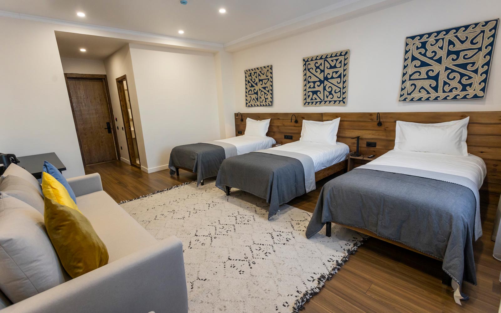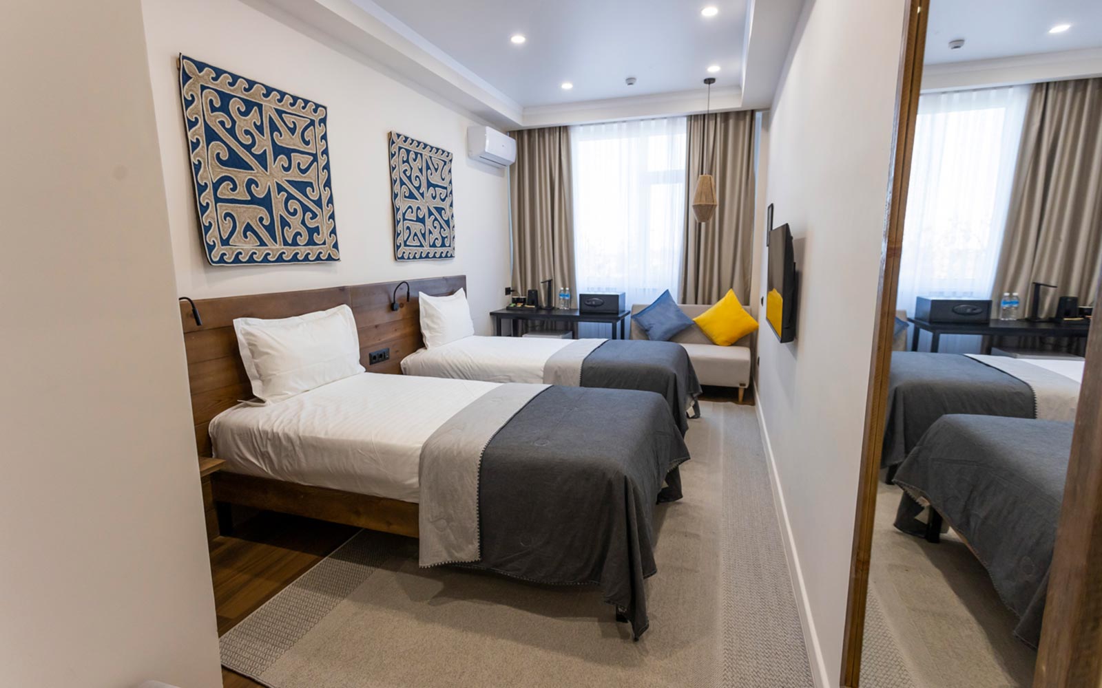 Номер с доступной средой (возможно 3-х местное размещение). Просторный номер, оборудованный для комфортного проживания гостей с ограниченной мобильностью. Широкие проходы, удобные кровати. Удобно, безопасно, с заботой о вашем комфорте.